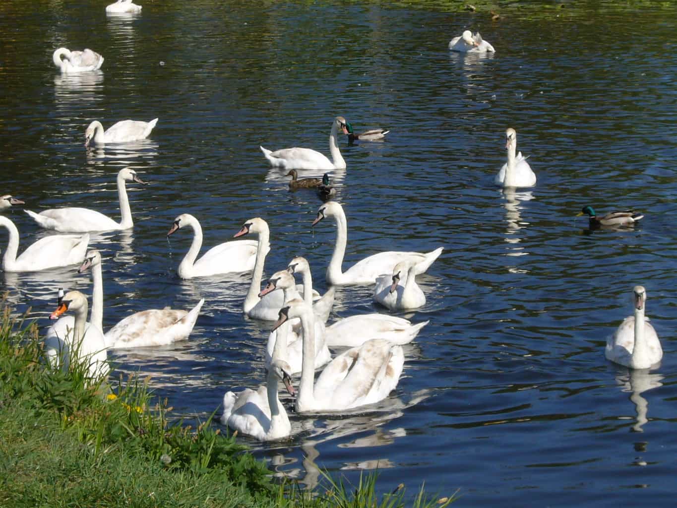 Rundka po Parku Zdrojowym i jedziemy wzdłuż Jeziorki w stronę Papierni. Za tamą napotkaliśmy stadko łabędzi.