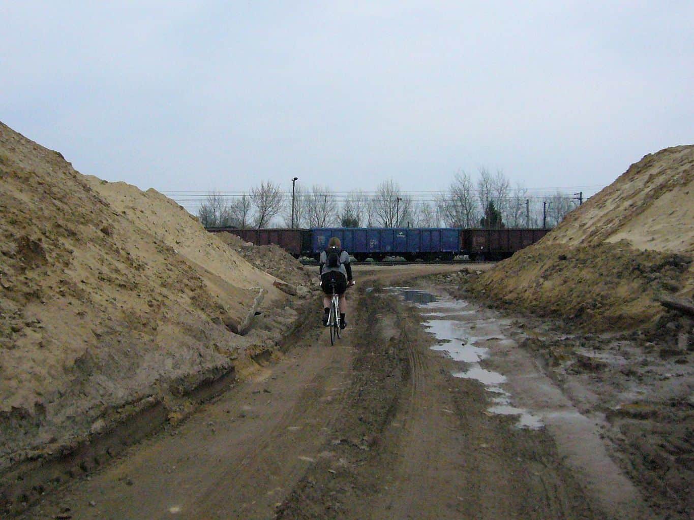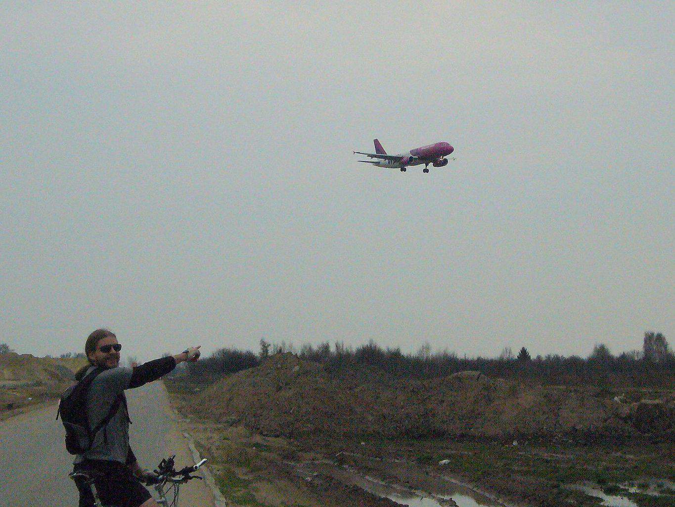 Okazało się, że ze względu na wiosenne błotko nie uda się nam przejechać wzdłuż płotu lotniska, dlatego w dalszą drogę ruszyliśmy koło torów świeżo budowaną ulicą (częścią przyszłej obwodnicy), z której też było widać lądujące samoloty.