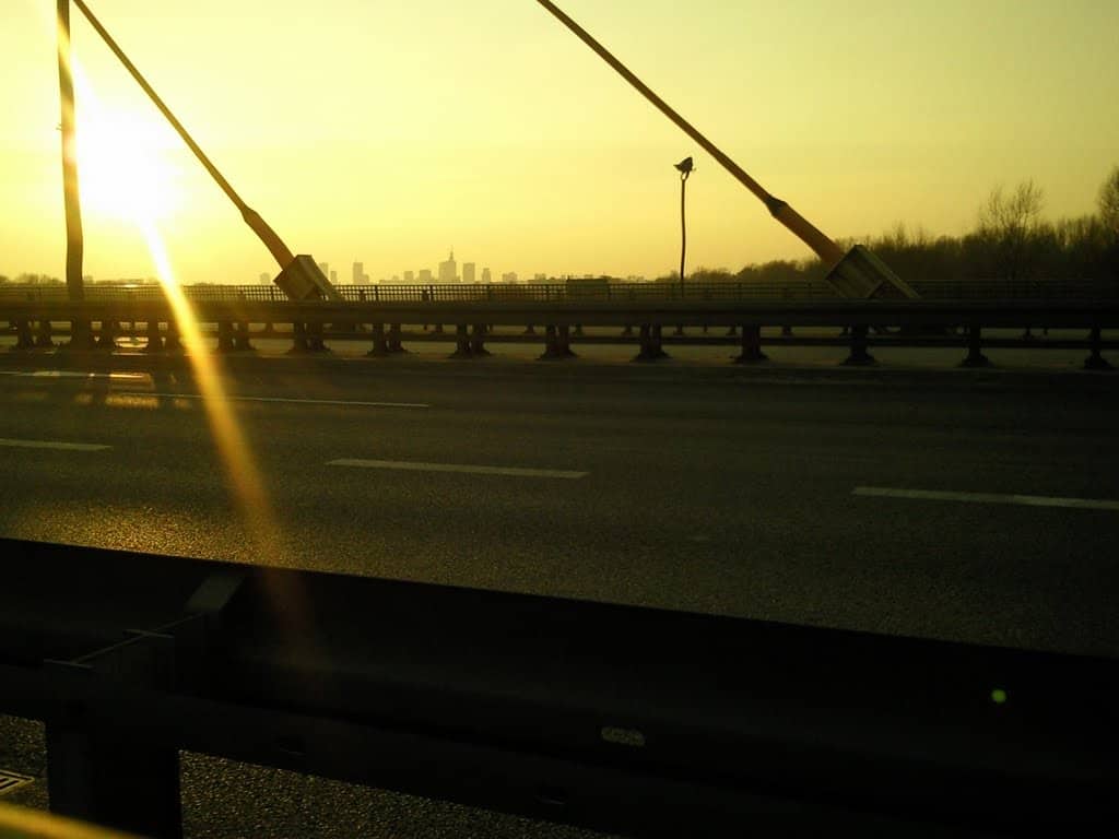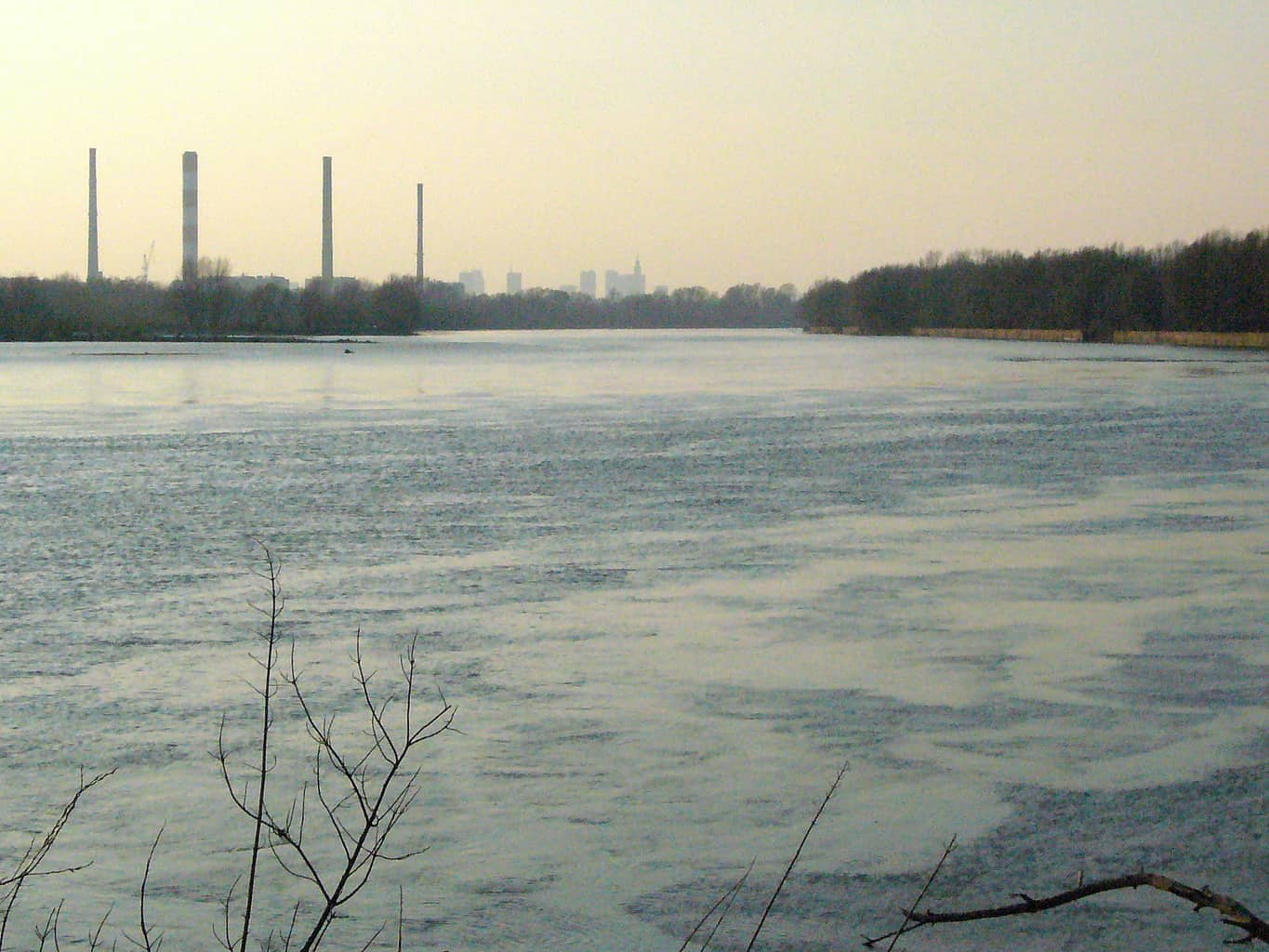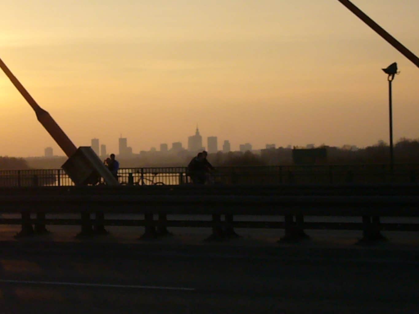 W tle widać kominy elektrowni Siekierki i wieżowce wraz z PKiNem w centrum: