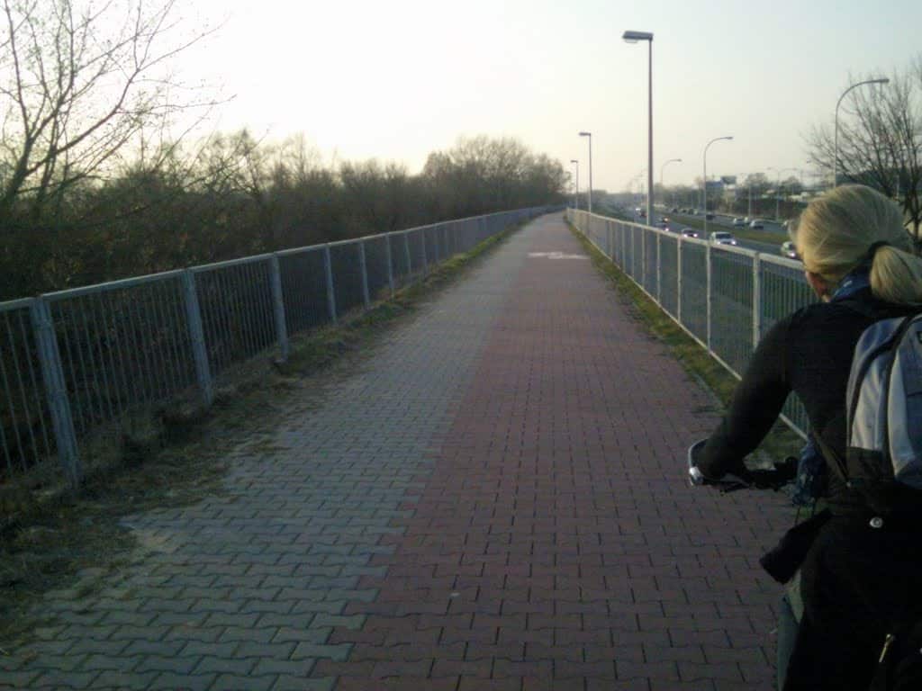 Prawie cała trasa naszej pierwszej wycieczki wiodła ścieżką rowerową. Najpierw do Mostu Siekierkowskiego, a potem na południe Wałem Miedzeszyńskim. Mimo niesprzyjającego wiatru udało nam się dotrzeć do celu, czyli ul. Romantycznej. Z niej trafiliśmy nad Wisłę. Tam przez chwilę podziwialiśmy widoki: