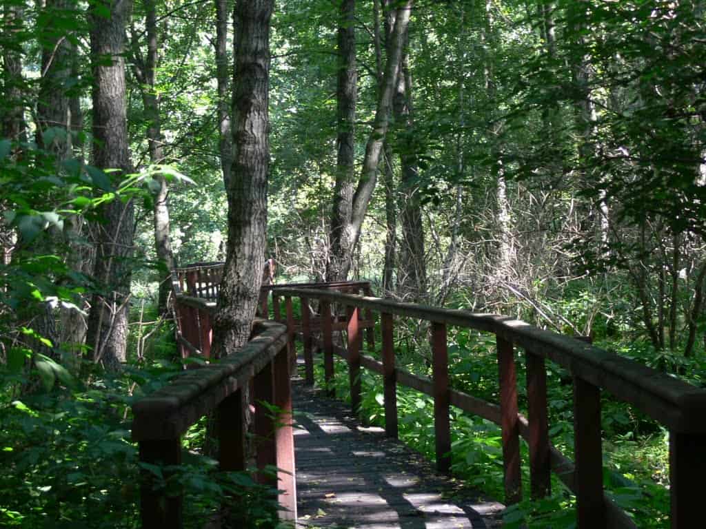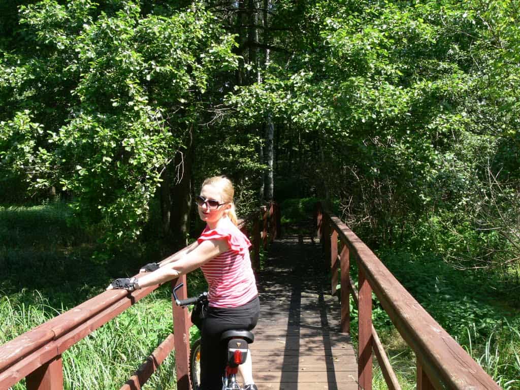 Kolejna wycieczka i od razu nowy rekord. Udało nam się przejechać (i trochę przejść) prawie 90 km! Kolejny raz wyruszyliśmy ze stacji metra Dworzec Gdański. Mijając cmentarz bródnowski – tym razem od strony wschodniej – dojechaliśmy do lasu bródnowskiego, w centrum którego znajduje się kładka widokowa nad uroczymi moczarami.