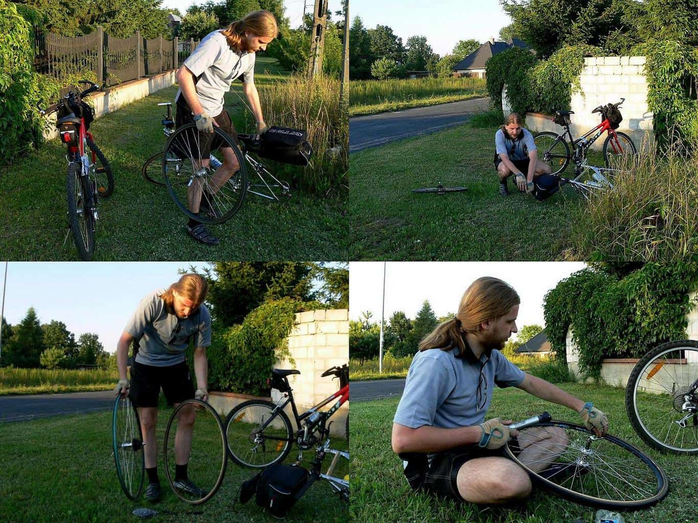 Już na Białołęce mieliśmy małą awarię… A dokładniej – Dżako zmuszony był wymienić świeżo przedziurawioną dętkę, co trochę opóźniło nasz powrót do domu.