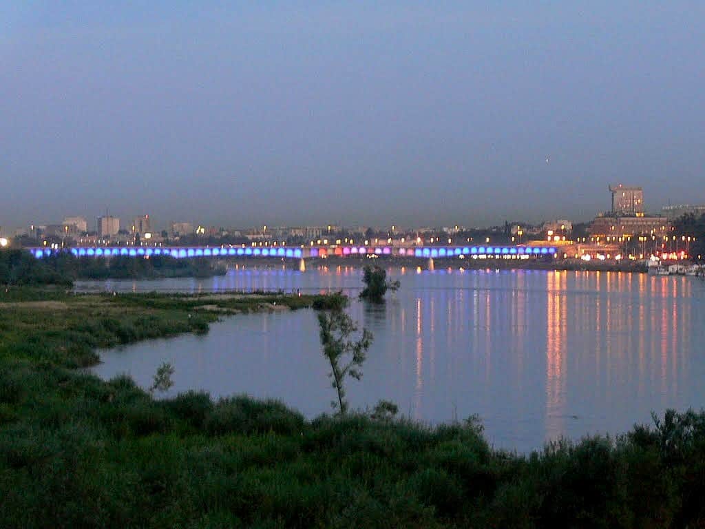 Zapadający zmrok pozwolił nam na obserwację nocnych widoków z Mostu Gdańskiego.
