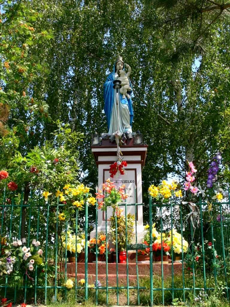 Za nim w szczerym polu postawiono figurkę wotywną za ocalenie od zarazy cholerycznej w 1852r.