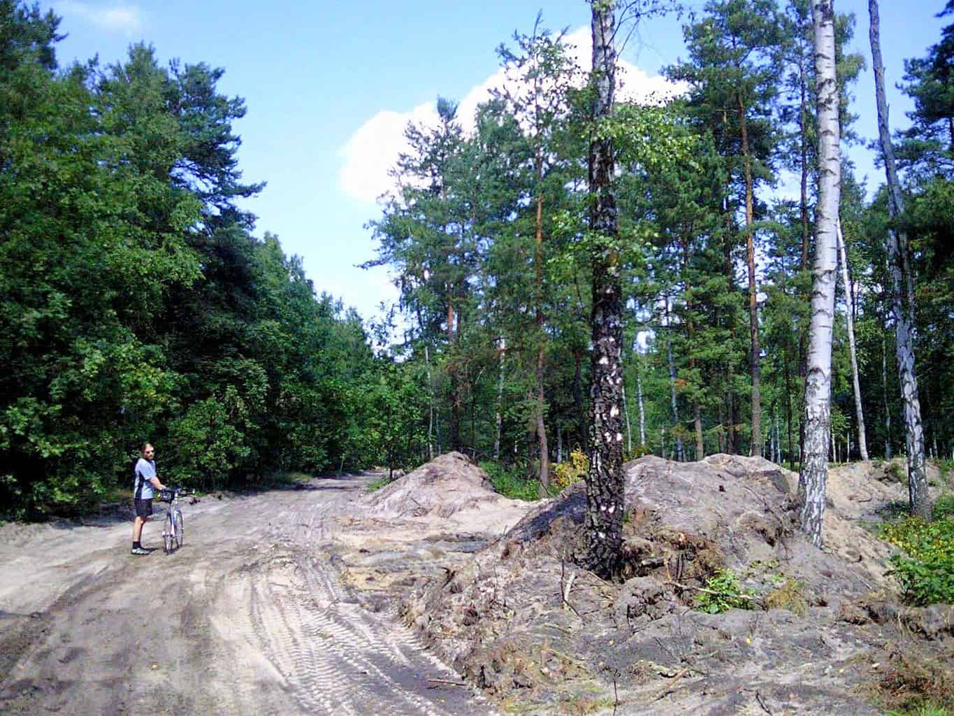 Przez pole za figurką dojechaliśmy do Puszczy Słupeckiej, która przywitała nas niestety licznymi wydmami, przez które trzeba było się przeprawić pieszo.