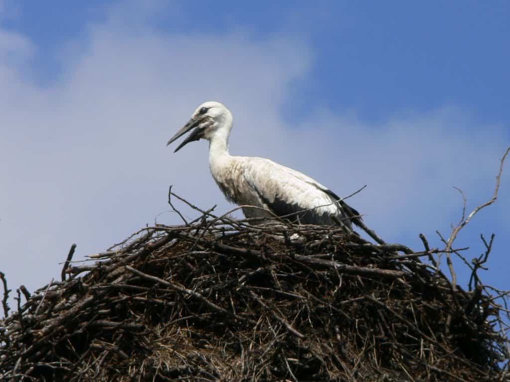 Na naszej trasie napotkaliśmy też trochę bocianów, oto jeden z nich: (dosyć upiornie wygląda, ale jest jeszcze młody…)