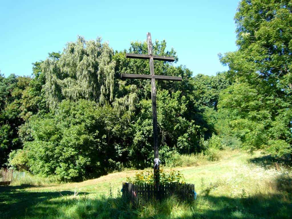 Wracając, przejechaliśmy przez Radzikowo, w którego okolicach zauważyć można krzyże lotaryńskie. Są to już rzadko występujące na Mazowszu podwójne krzyże, które (jak niegdyś wierzono) miały chronić mieszkańców przed wszelką zarazą.