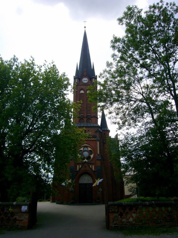 Pomiędzy fabryką a osiedlem robotników znajduje się neogotycki kościół Oblubieńca Najświętszej Maryi Panny, powstały w latach 1907-09.