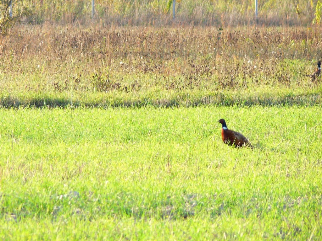 Na polach, w świetle powoli zachodzącego słońca, przechadzały się bażanty.