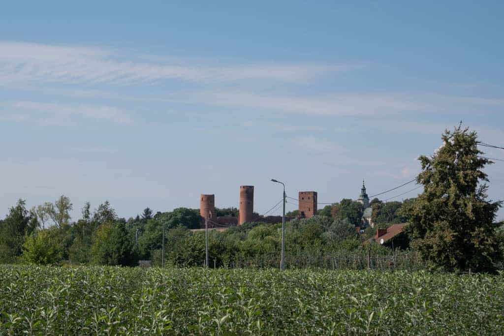 Dzień powitał wszystkich straszliwym upałem, dlatego postanowiliśmy (tak na zachętę) zacząć wyprawę od zjedzenia lodów w Górze Kalwarii… Schłodzeni mogliśmy już ruszyć w drogę 🙂 Niedługo po wyjechaniu z miasteczka, ukazały się nam na horyzoncie ruiny położonego na wzgórzu zamku w Czersku.