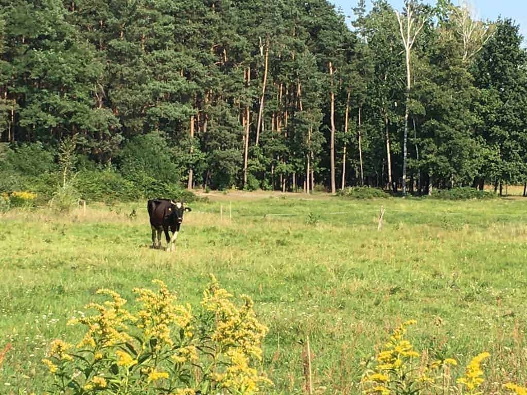 Niedaleko od wiatraka, na polanie, spotkaliśmy tę oto pasącą się krowę 🙂
